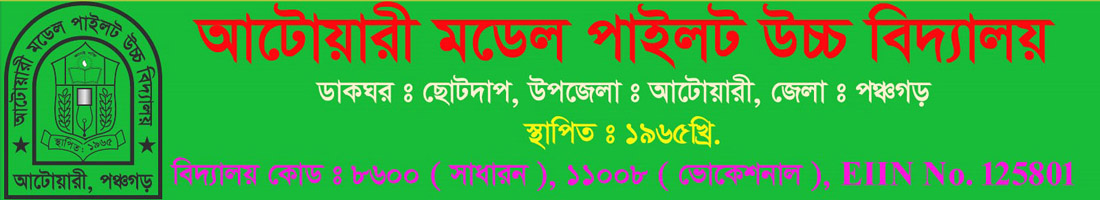 “আটোয়ারী মডেল পাইলট উচ্চ বিদ্যালয়” পঞ্চগড় জেলার আটোয়ারী উপজেলায় অবস্থিত একটি ঐতিহ্যবাহী শিক্ষা প্রতিষ্ঠান। ১৯৬৫ সালে প্রতিষ্ঠিত এই বিদ্যালয়টি শুরু থেকেই অত্র এলাকায় শিক্ষার আলো ছড়িয়ে আসছে। এলাকার অন্যতম প্রাচীন ও মানসম্পন্ন বিদ্যালয় হিসেবে এটি সুপরিচিত। দীর্ঘদিন ধরে প্রতিষ্ঠানটি সুশৃঙ্খল পরিবেশে গুণগত শিক্ষা প্রদান করে আসছে এবং শিক্ষার্থীদের মেধা ও নৈতিক উন্নয়নে গুরুত্বপূর্ণ ভূমিকা রাখছে।